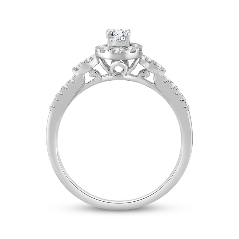 - Round-Cut Diamond Oval Halo Engagement Ring 3/8 ct tw White Gold Plated