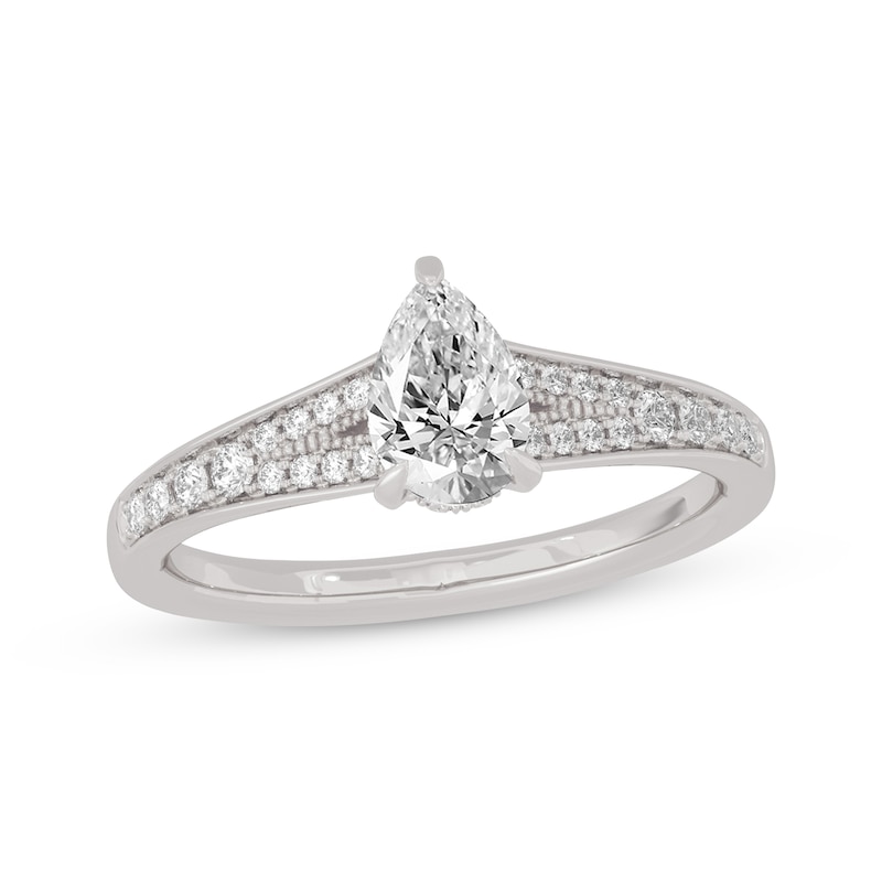 Pear-Shaped & Round-Cut Split-Shank Engagement Ring 3/4 ct tw White Gold Plated