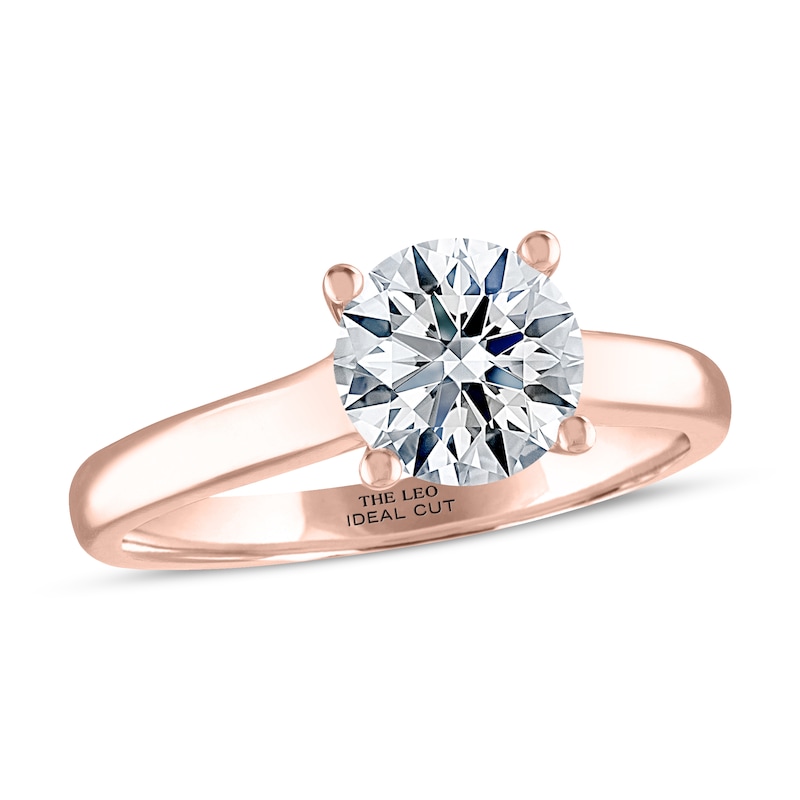 THE LEO Ideal Cut Diamond Solitaire Engagement Ring 1-1/2 ct tw Rose Gold Plated