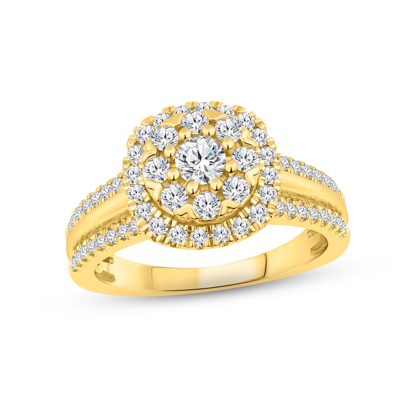 Diamond Halo Engagement Ring 1 ct tw Round-cut Yellow Gold Plated