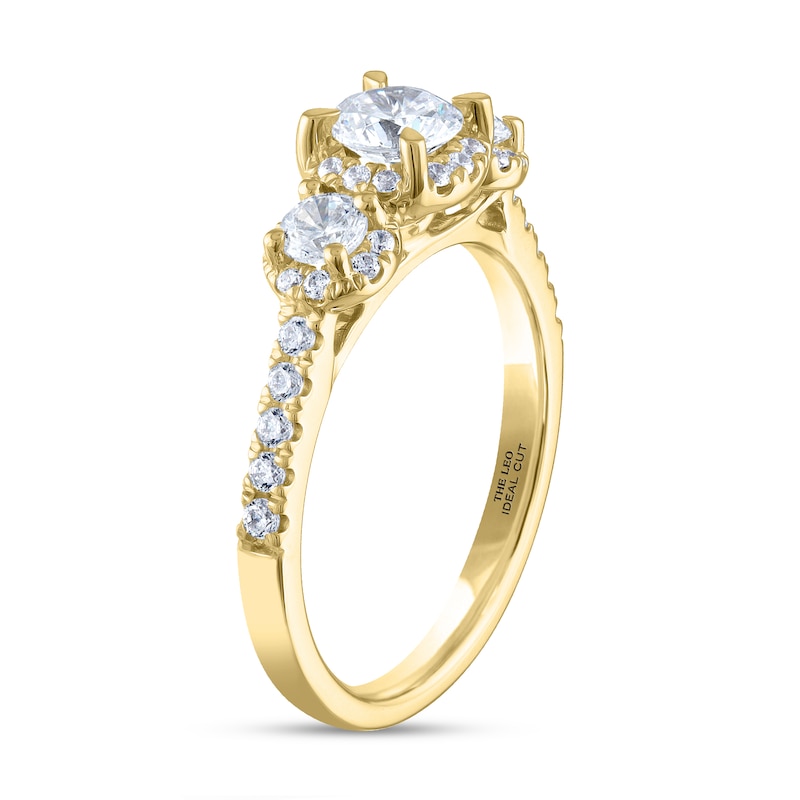 THE LEO Ideal Cut Diamond Three-Stone Engagement Ring 1 ct tw Yellow Gold Plated