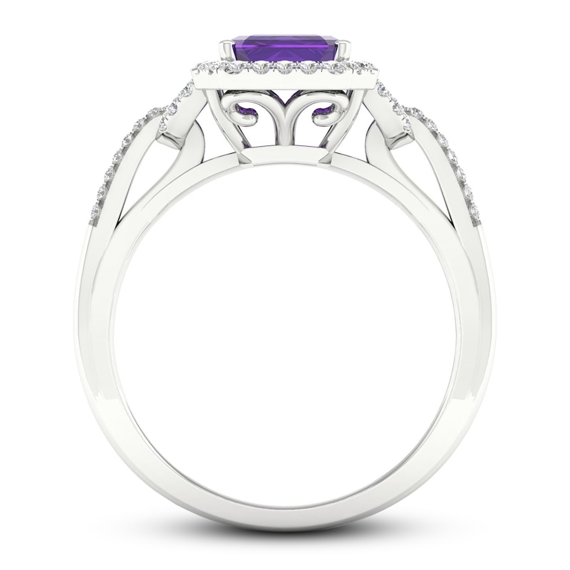 - Amethyst & Diamond Ring 1/5 ct tw White Gold Plated