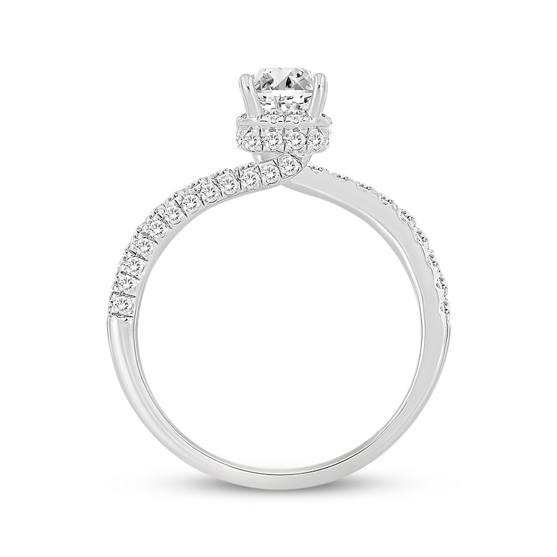 - Emerald-Cut Diamond Bypass Engagement Ring 1-1/8 ct tw White Gold Plated