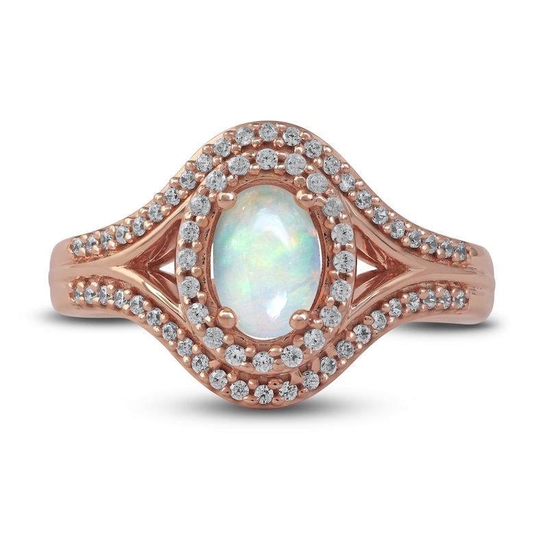 - Ethiopian Opal & Diamond Ring 1/4 ct tw Rose Gold Plated