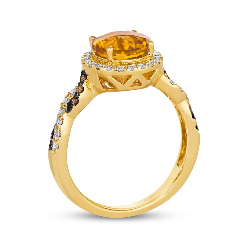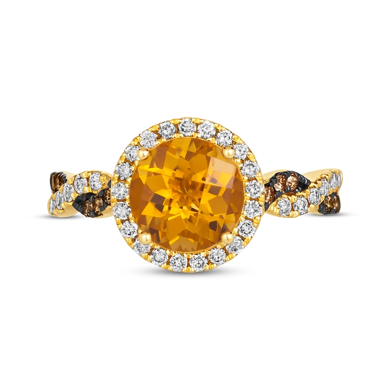 Sublime and stunning, this Le Vian® ring from the KAY exclusive Chocolate Twist™ collection showcases a glowing round-cut Cinnamon Citrine® wrapped in a halo of round Nude Diamonds™. Ribbons of round Chocolate Diamonds® and Nude Diamonds™ interweave down the twisted band for a total diamond weight of 3/8 carat. The ring is crafted in warm 14K Honey Gold™. Le Vian®. Discover the Legend. This ring is available in limited sizes. If you don't see your size here, please visit a store to order your ring.