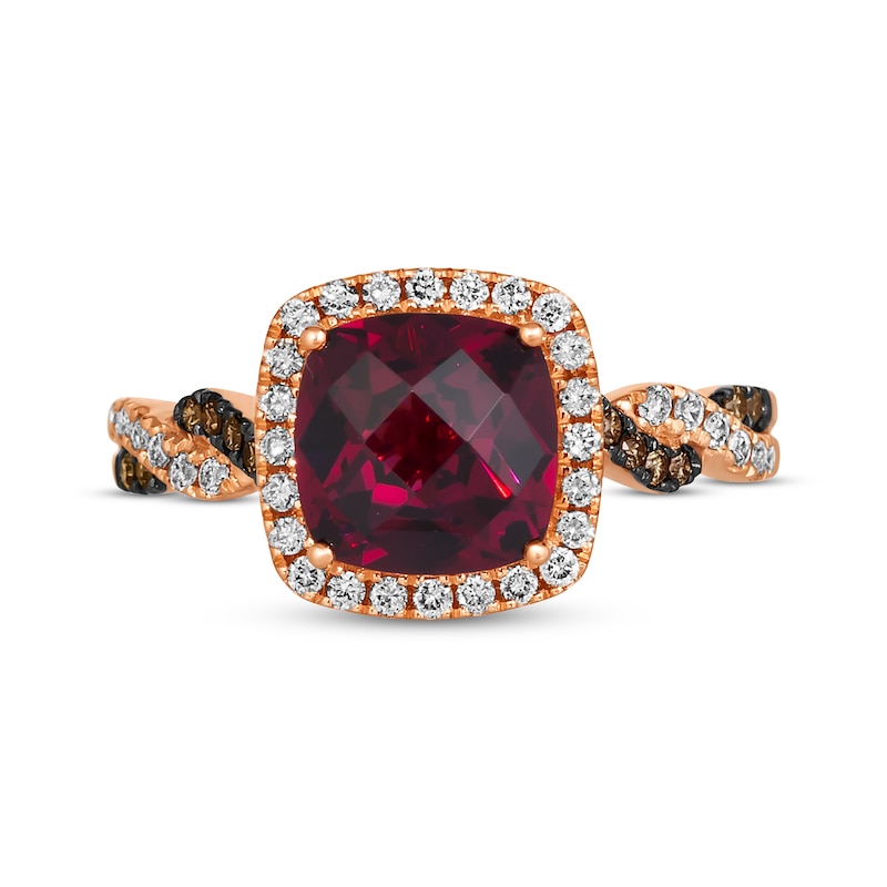- Le Vian Chocolate Twist Cushion-Cut Rhodolite Ring 1/3 ct tw Diamonds Strawberry Gold Plated