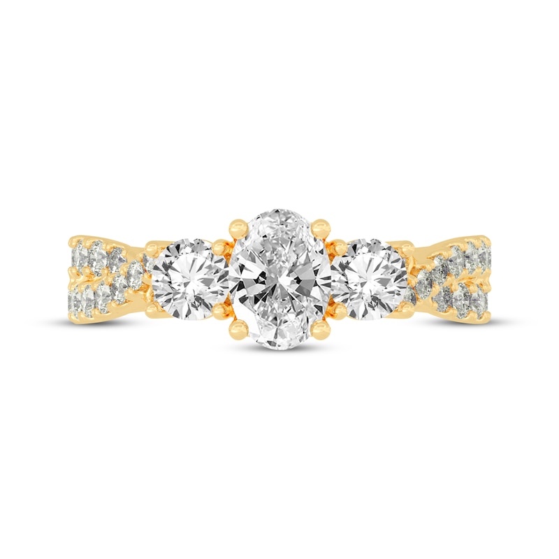 - Oval & Round-Cut Diamond Three-Stone Engagement Ring 2 ct tw Yellow Gold Plated