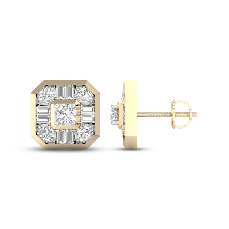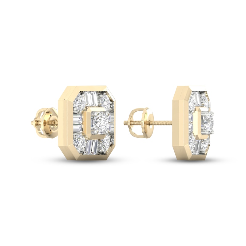 - Men's Lab-Created Diamonds by Earrings 1-1/2 ct tw Round & Baguette-cut Yellow Gold Plated