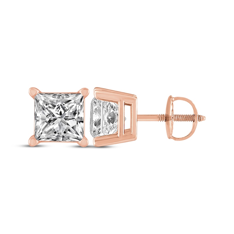 - Princess-Cut Diamond Solitaire Stud Earrings 1 ct tw Rose Gold Plated