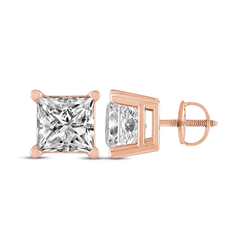 - Princess-Cut Diamond Solitaire Stud Earrings 2 ct tw Rose Gold Plated