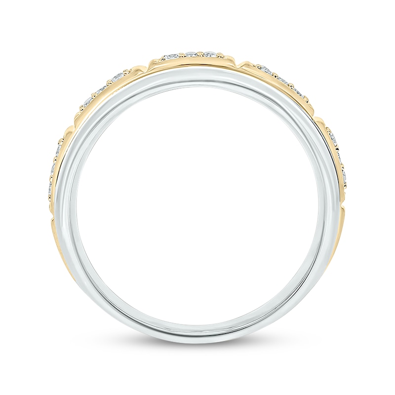 - Men’s Round-Cut Diamond Framed Trios Wedding Band 1/5 ct tw Two-Tone Gold Plated