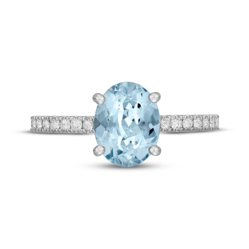 An oval aquamarine provides an enchanting splash of color to this captivating engagement ring for her. Styled in modern 14K white gold, brilliant round-cut diamonds adorn the band, bringing the total diamond weight to 1/2 carat. From the Neil Lane Bridal® collection.