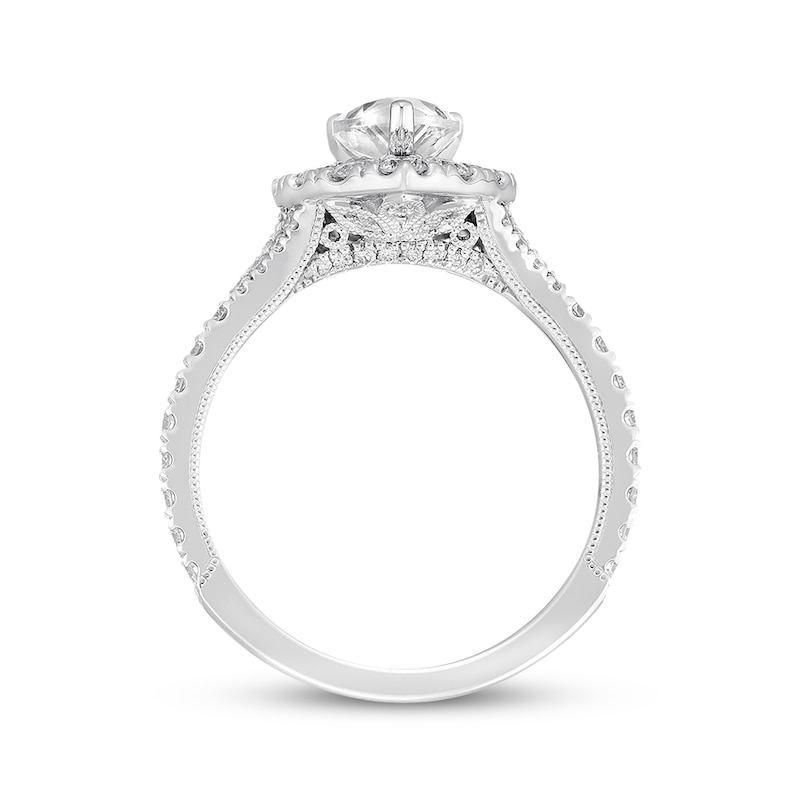 With an eye for style and elegance, Neil Lane has become an icon in designer bridal jewelry. This stunning diamond engagement ring is no exception, with its marvelous 1 carat pear-shaped center diamond, and an array of round diamonds to beautifully complement. Crafted of 14K white gold, the ring has a total diamond weight of 1 7/8 carats.