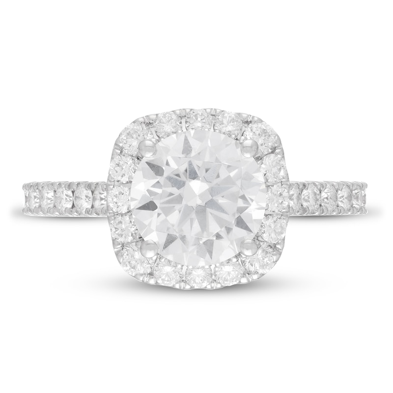 This captivating Neil Lane™ women's engagement ring features a stunning round-cut center diamond, haloed and flanked by additional round diamonds. The 14K white gold ring has a total diamond weight of 2 3/4 carats and crafted to nestle alongside the matching wedding band (sold separately). From the Neil Lane™ bridal collection.