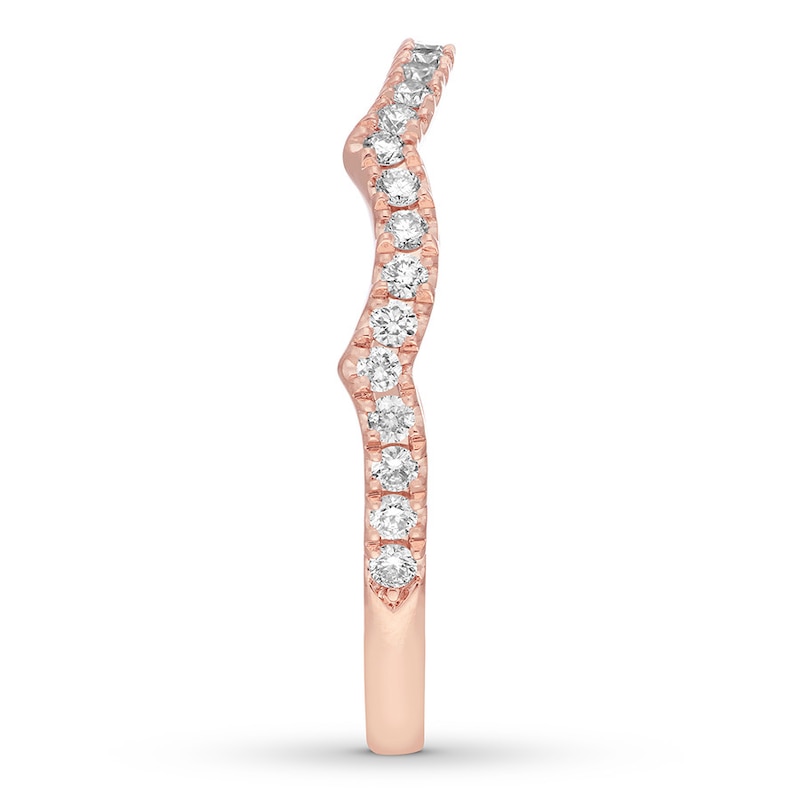 This elegant wedding band from Neil Lane Bridal® is lined with glittering round diamonds totaling 1/3 carat in weight. Fashioned in 14K rose gold, the ring is curved to fit alongside the matching engagement ring (sold separately).