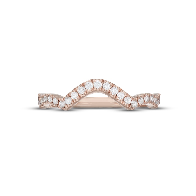 Contoured to fit alongside the matching Neil Lane Bridal® engagement ring (sold separately), this gorgeous wedding band features luxurious curves of 14K rose gold decorated with sparkling round diamonds. The ring has a total diamond weight of 1/3 carat.