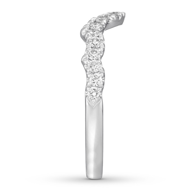Contoured to fit alongside her matching engagement ring (sold separately), this beautiful 14K white gold wedding band from Neil Lane Studio glistens with round diamonds totaling 1/3 carat in weight.