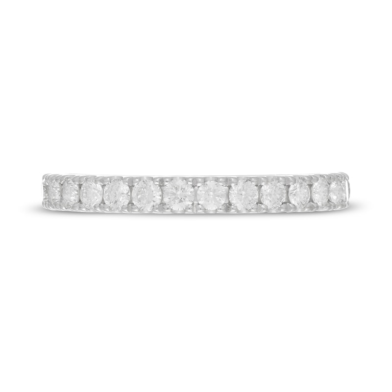 This classic diamond wedding band for her is crafted in iconic 14K white gold to pair with her matching engagement ring (sold separately). Brilliant round diamonds sparkle along the band for a total diamond weight of 5/8 carat. The ring is finished with lovely milgrain detailing. From the Neil Lane Bridal® collection.