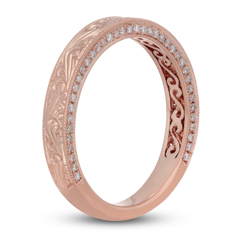 Whether you’re shopping to propose, already proposed, or browsing rings together — we celebrate you, same-sex proposals, weddings, anniversaries and love in all forms! This brilliant ring from the Neil Lane® collection is engraved with an artistic scrolling motif and enhanced with radiant round-cut diamonds tracing the profile. Fashioned in romantic 14K rose gold, the 3mm band has a total diamond weight of 1/4 carat. Styles for all, available in sizes 6- 11.