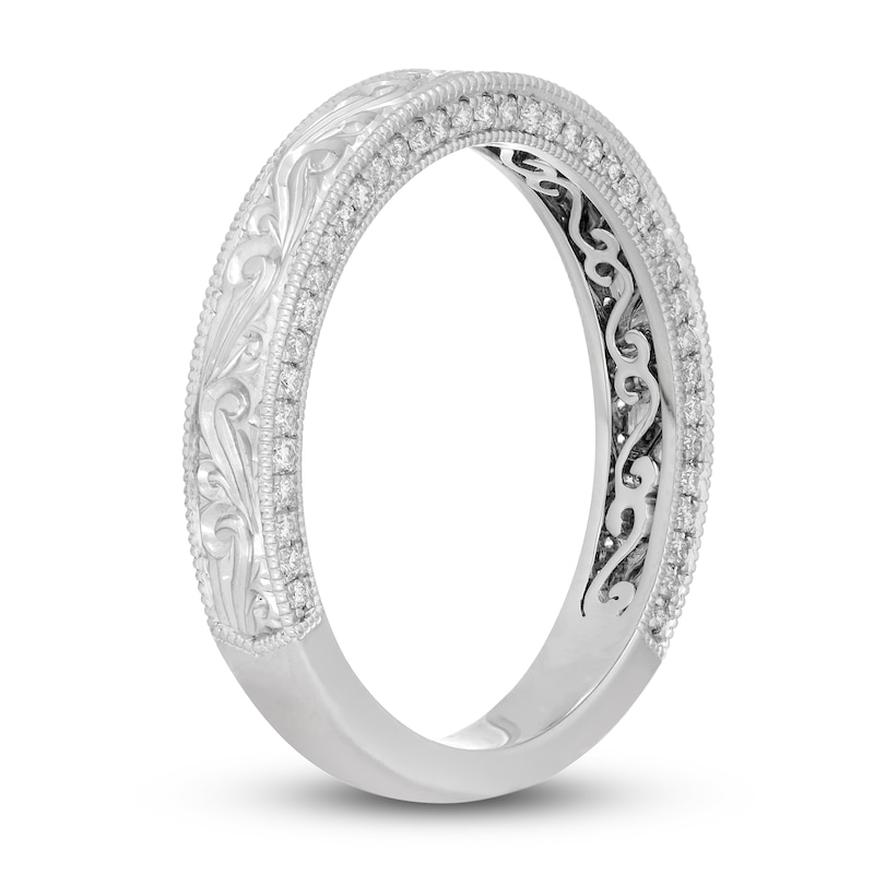 Whether you’re shopping to propose, already proposed, or browsing rings together — we celebrate you, same-sex proposals, weddings, anniversaries and love in all forms! This brilliant ring from the Neil Lane® collection is engraved with an artistic scrolling motif and enhanced with radiant round-cut diamonds tracing the profile. Fashioned in iconic 14K white gold, the 3mm band has a total diamond weight of 1/4 carat. Styles for all, available in sizes 6- 11.