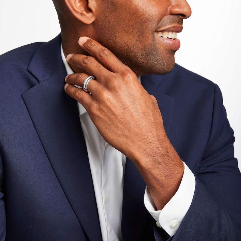 - Neil Lane Men’s Black & White Diamond Wedding Band 1/2 ct tw White Gold Plated