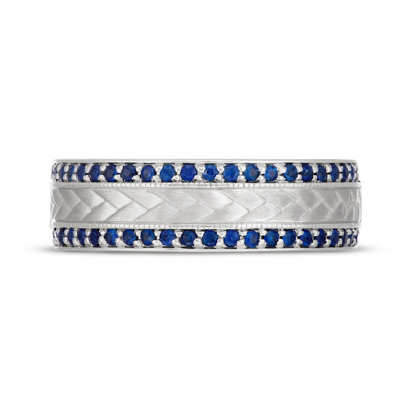 - Neil Lane Men's Blue Sapphire Wedding Band White Gold Plated