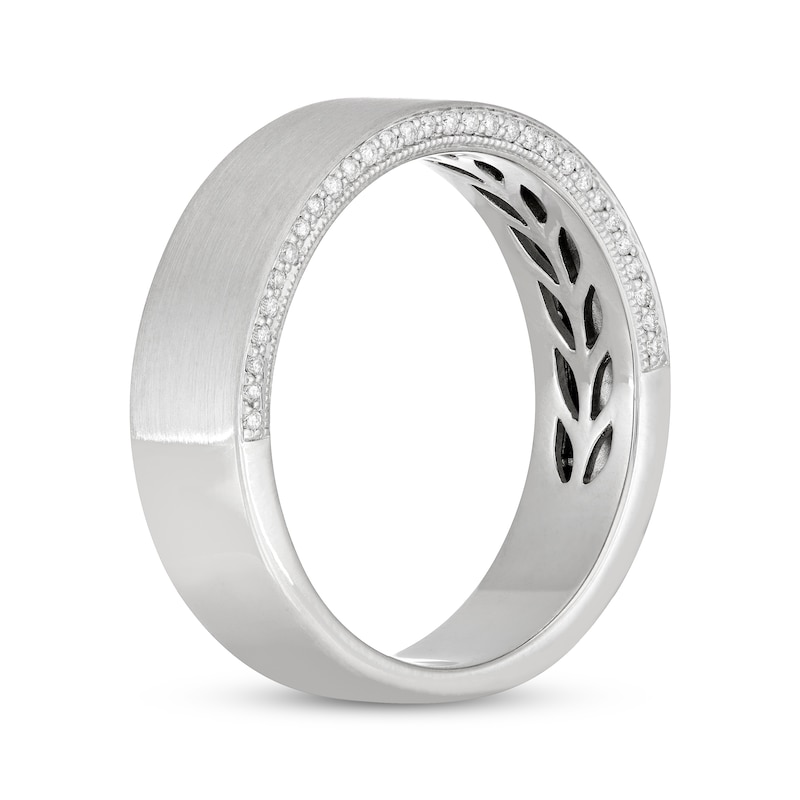Subtle details make this Neil Lane™ men's wedding band a distinctive choice. The edges of the brushed 14K white gold band are lined with round diamonds for a touch of brilliance. The ring has a total diamond weight of 1/5 carat.