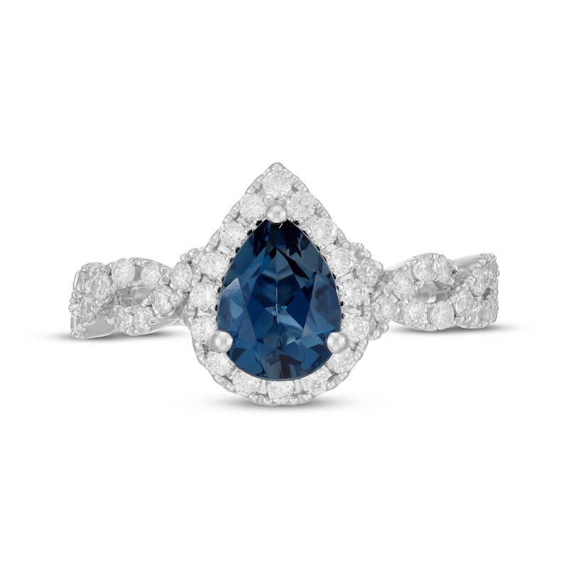 - Neil Lane Pear-Shaped London Blue Topaz Engagement Ring 5/8 ct tw Diamond White Gold Plated