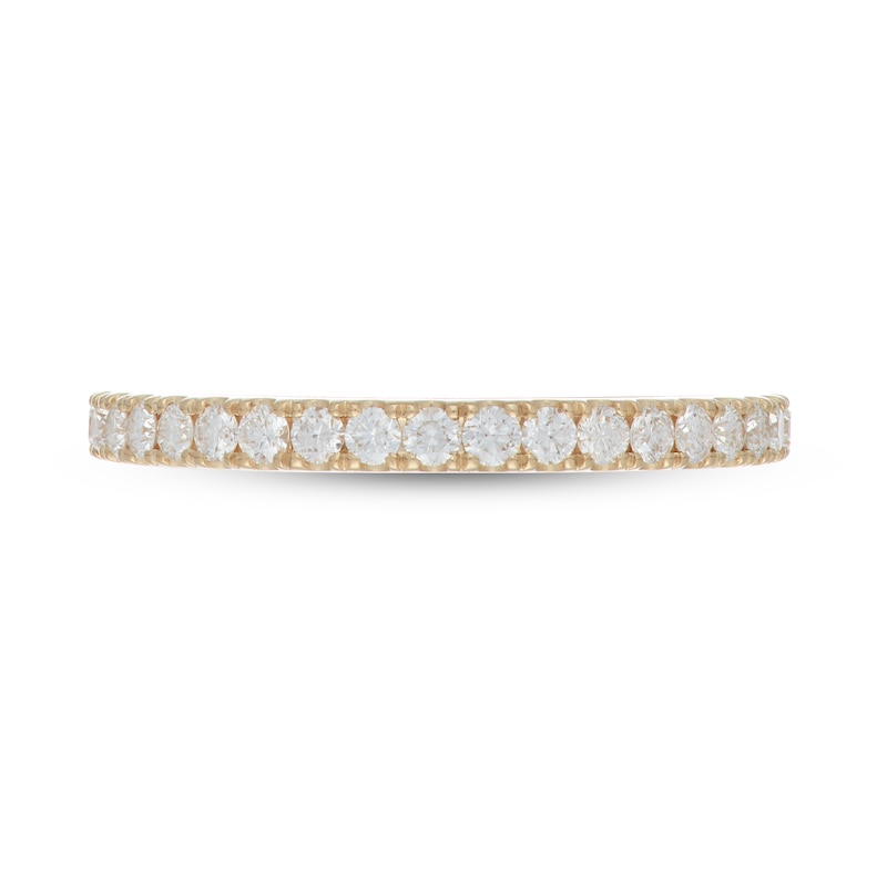 Independently certified diamonds elevate this Neil Lane Premiere anniversary band from gorgeous to truly stunning. The ring is styled in elegant 14K yellow gold, and the sparkling round diamonds total 1/2 carat in weight.