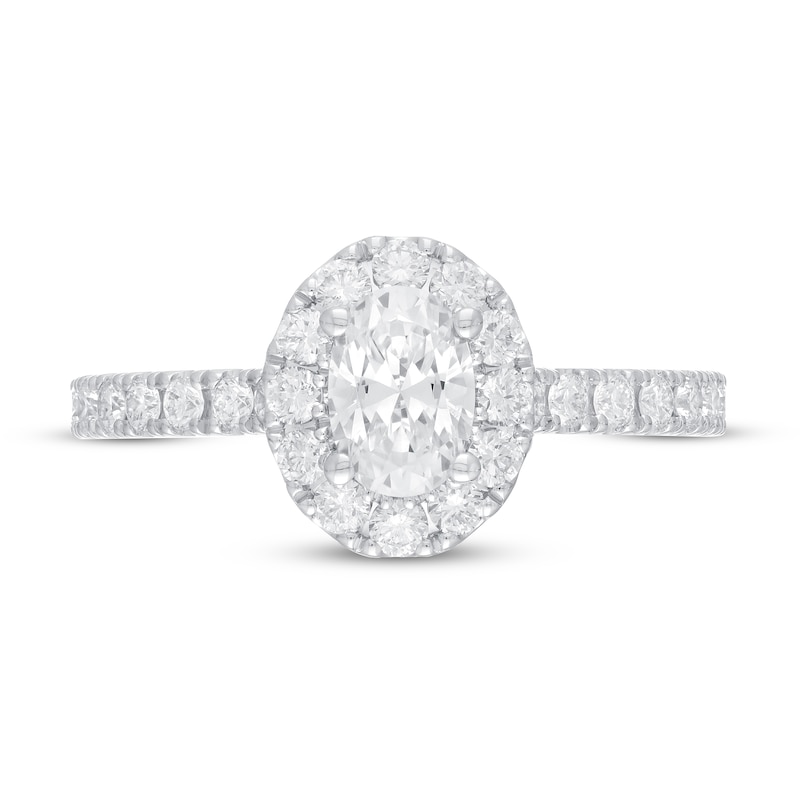 From the Neil Lane™ Premiere collection, this timeless yet modern women’s engagement ring is made unforgettable with its independently certified round diamonds. The spectacular oval-cut center diamond is stunning inside the encircling round diamonds that perfectly accent the classic 14K white gold band. The ring has a total diamond weight of 1 3/8 carats.