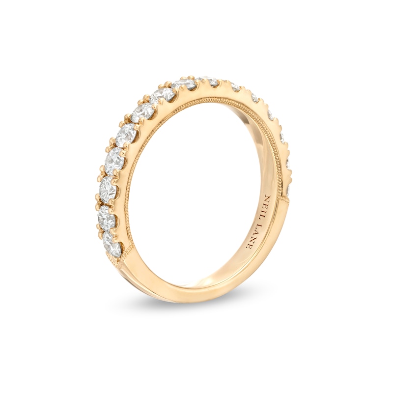 A beautiful complement to a Neil Lane Bridal® engagement ring or wedding band (sold separately), this brilliant anniversary band showcases a line of round diamonds totaling 1 carat in weight. Milgrain beading lines the inner edge of the 14K yellow gold band for the finishing touch.