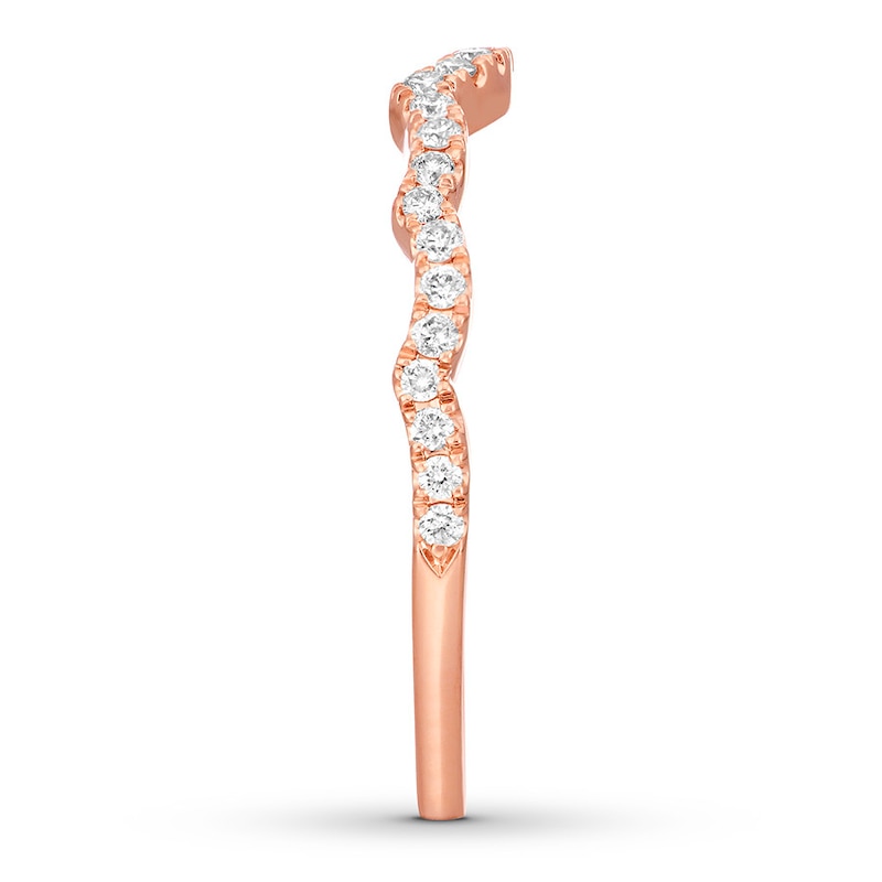 Sparkling round diamonds edge this fabulous wedding band from Neil Lane Bridal®, contoured to fit alongside her matching engagement ring (sold separately). The ring is styled in 14K rose gold and has a total diamond weight of 1/5 carat.