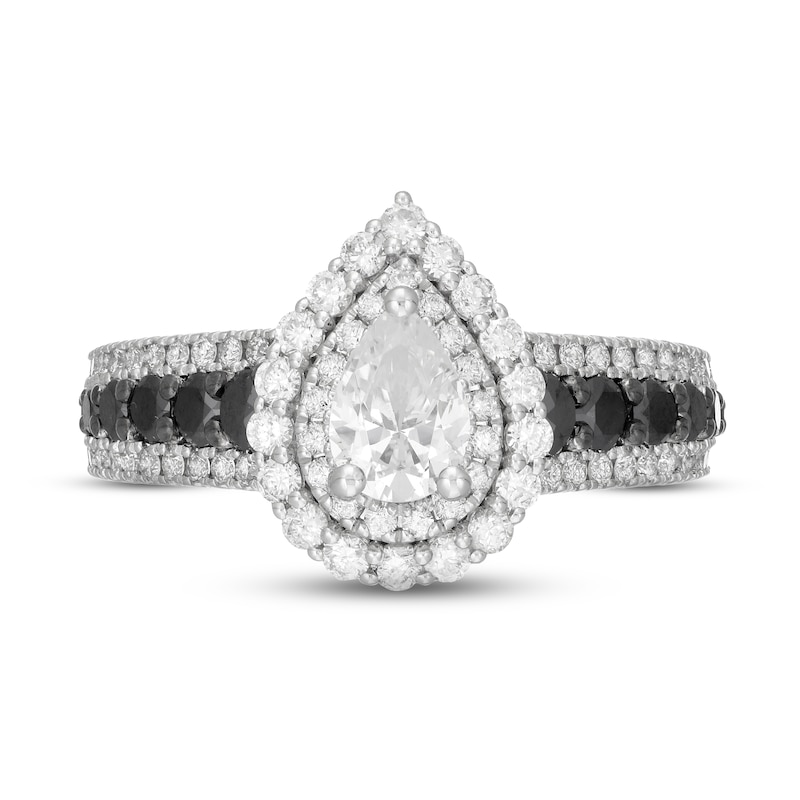- Neil Lane White & Black Diamond Engagement Ring 1-3/4 ct tw Pear & Round-cut White Gold Plated