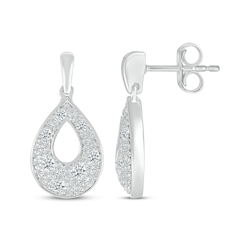 - Diamond Cobblestone Teardrop Dangle Earrings 5/8 ct tw White Gold Plated
