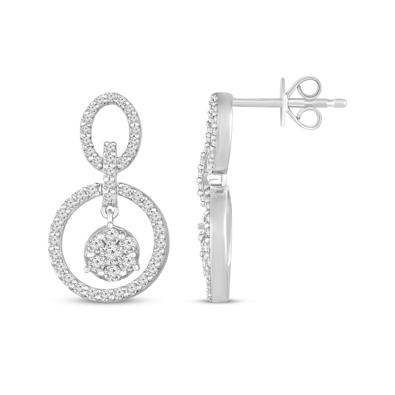 - Diamond Oval & Circle Drop Earrings 3/4 ct tw White Gold Plated