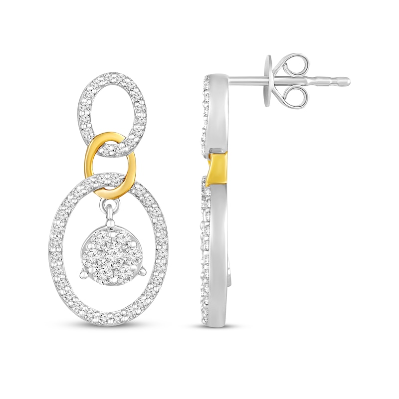- Diamond Oval Link Drop Earrings 3/4 ct tw Two-Tone Gold Plated