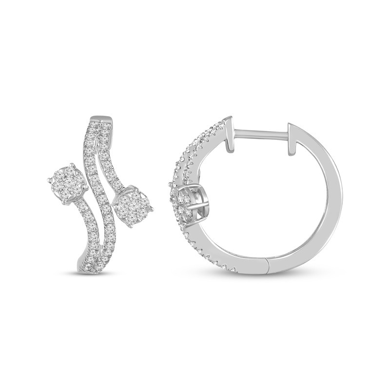 - Multi-Diamond Center Bypass Hoop Earrings 1/2 ct tw White Gold Plated