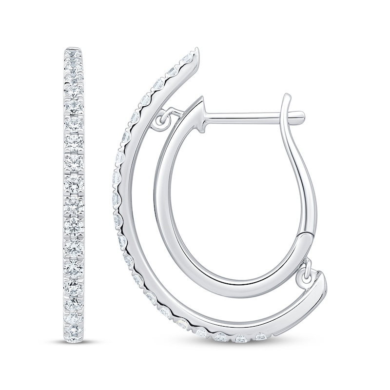 - Unstoppable Love Diamond Double Hoop Earrings 1 ct tw White Gold Plated