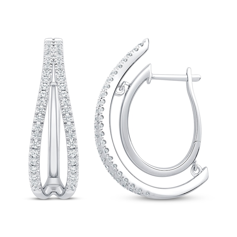 - Unstoppable Love Diamond Split Double Hoop Earrings 1 ct tw White Gold Plated