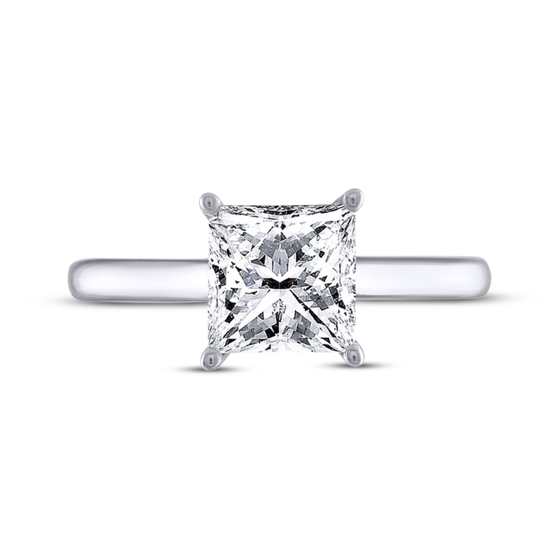 - A 2-carat princess-cut lab-created diamond solitaire is the awe-inspiring centerpiece