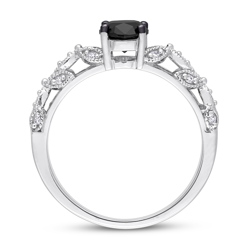 This exquisite engagement ring for her stands out. Set in iconic 14K white gold, a bold oval-cut black diamond shines at the center. Brilliant round-cut diamonds dance down each side of the band, surrounded by intricate milgrain detailing. The ring has a total diamond weight of 1 carat. From the Now & Forever® bridal collection.