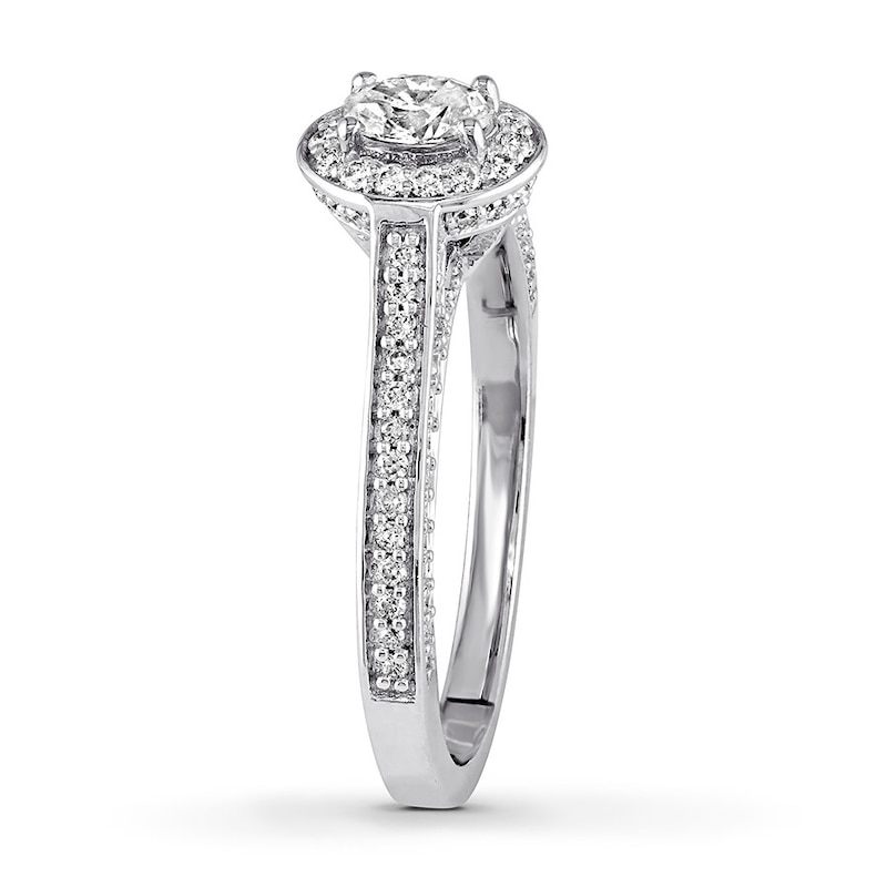 - Diamond Engagement Ring 5/8 ct tw Oval & Round White Gold Plated