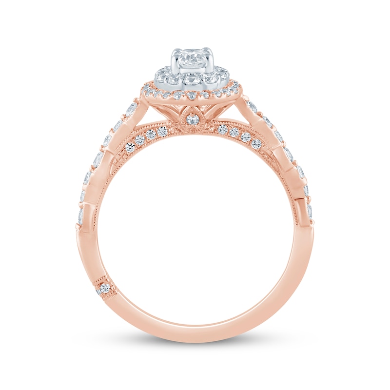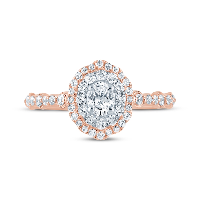 - Monique Lhuillier Bliss Oval-Cut Diamond Scallop Frame Engagement Ring 3/4 ct tw Two-Tone Gold Plated