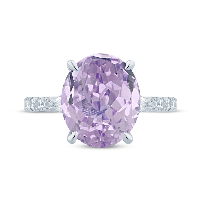 - Monique Lhuillier Bliss Oval-Cut Light Amethyst & Diamond Engagement Ring 1/2 ct tw White Gold Plated