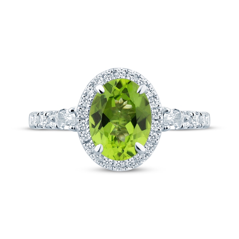 - Monique Lhuillier Bliss Oval-Cut Peridot & Diamond Halo Engagement Ring 1/2 ct tw White Gold Plated