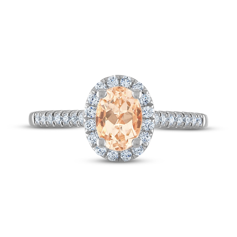 - Morganite & Diamond Oval Halo Engagement Ring 1/4 ct tw Round-cut White Gold Plated