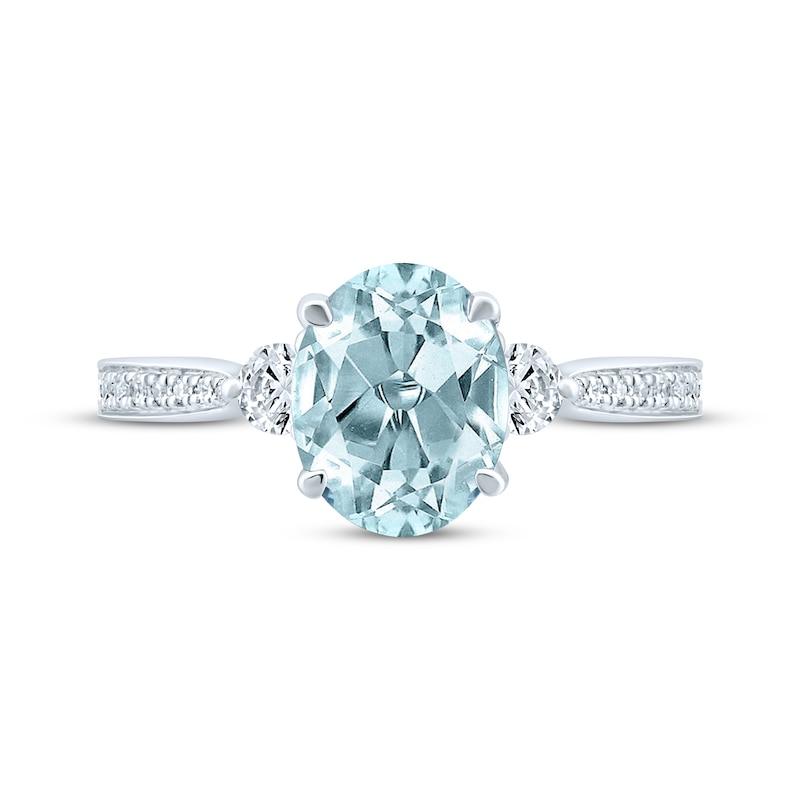 - Oval Aquamarine Engagement Ring 1/3 ct tw Diamonds White Gold Plated