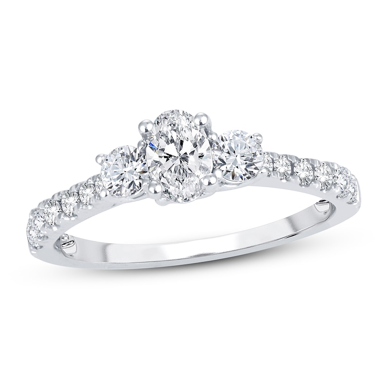 3-Stone Diamond Engagement Ring 1 ct tw Oval & Round White Gold Plated