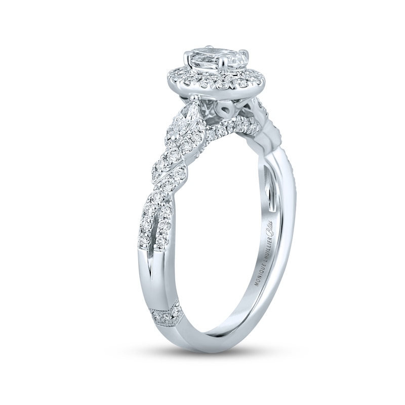 Monique Lhuillier Bliss Diamond Engagement Ring 7/8 ct tw Oval, Marquise & Round-cut White Gold Plated