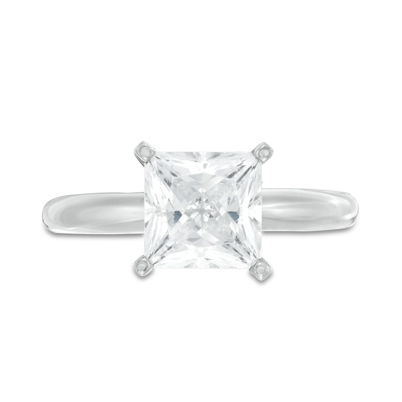 - Certified Diamond Solitaire 2 ct Princess-cut White Gold Plated